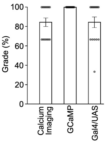 We evaluated the achievement of the first three learning objectives using the accuracy of student responses to assignments from weeks five and six (Figure 1). Results showed that 84% of students could describe the principles of calcium imaging, 100% of students were able to accurately explain the structure and mechanism of GCaMP, and 84% demonstrated a clear understanding of how to use the GAL4/UAS system to express genetically encoded calcium indicators in specific cells.